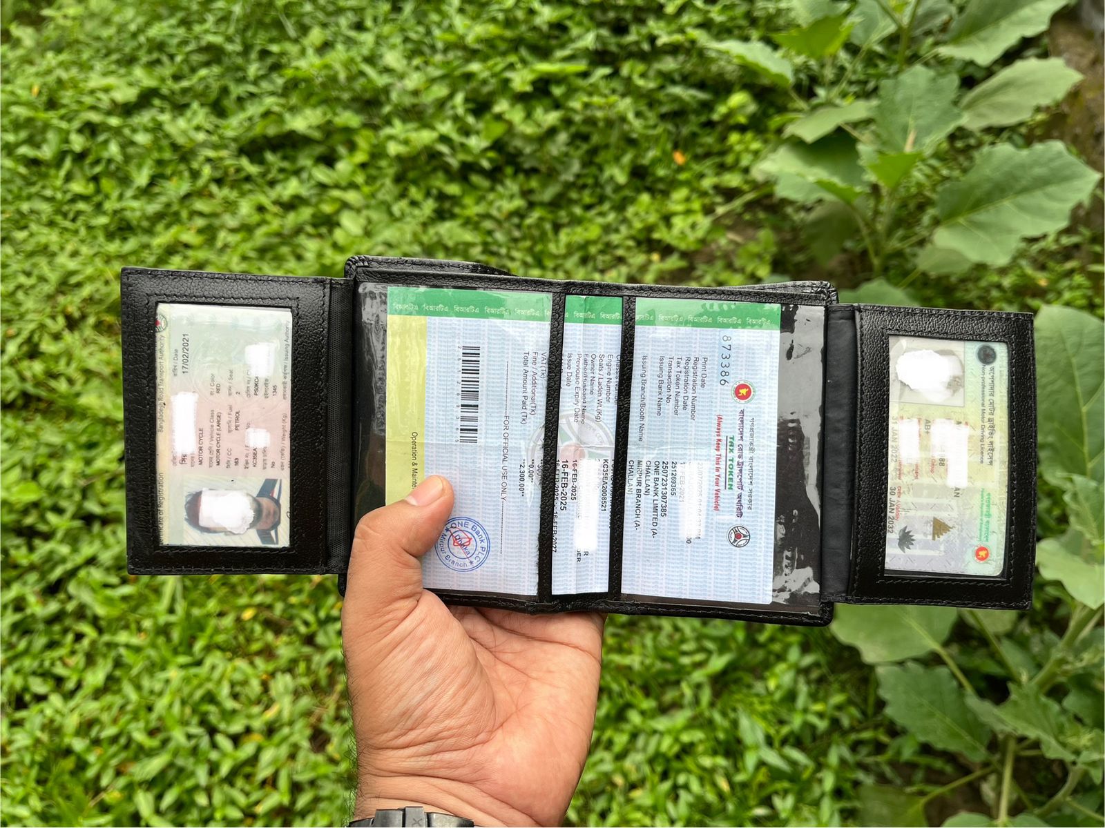 ভিতরে ৬+ কার্ড স্লট, ১টি ড্রাইভিং কার্ড স্লট, ১ টি রেজিস্ট্রেশন কার্ড ও ১ টি ট্যাক্স টোকেন কার্ড